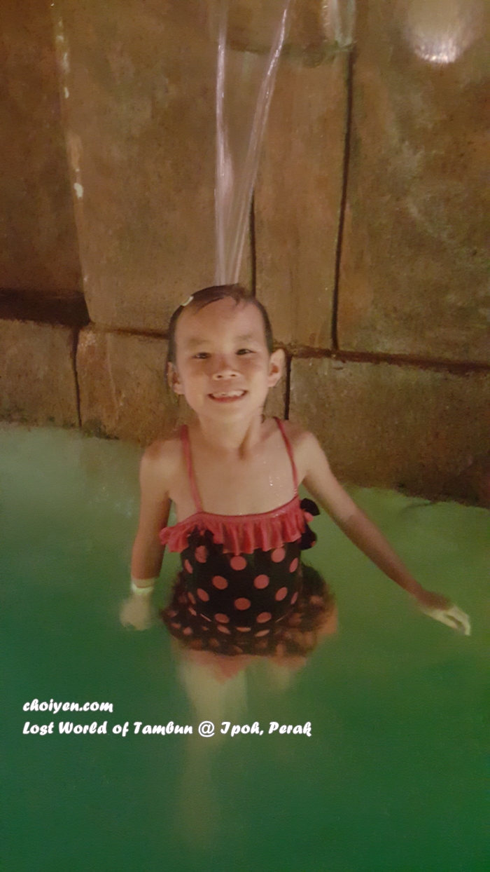 When the night approached we left the petting zoo and changed into our swim suit. Time to dip ourselves into the mineral hot spring. The 1.8 acres Lost World Hot Springs and Spa is divided into a few area such as Infinity Pool, Lost World Steam Cave, Foot Spa, Crystal Spa, Top of the World Pool, The Geyser of Tambun and Crystal Pool. The water in the hot springs comes from Tambun and is then channelled out to the nearby Kopisan River. Temperatures vary between the pools (from 40ยฐC to 45ยฐC) allowing you to find the perfect one to relax and soak in.