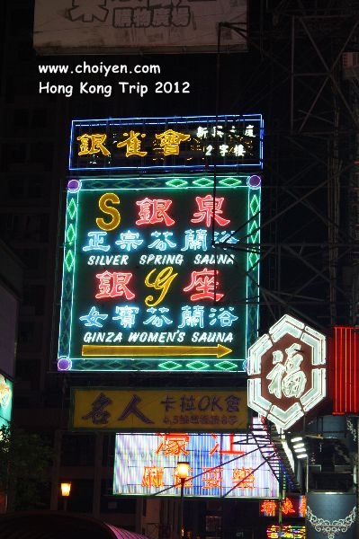 The huge neon light signboards.