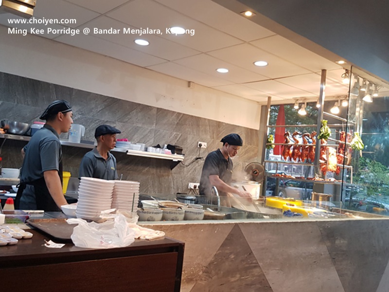 Located in the heavily populated Bandar Menjalara, Kepong, Ming Kee Porridge is another dining option except steamboat, Dai Chow and Thai food. The setting of the restaurant is simple with two rows of seating on both side of the dining area and there’s a cooking station right at the entrance where those sexy roasted ducks being displayed to attract the passer by. Although the restaurant is air-conditioned, but due to the open kitchen, it can be quite warm if you’re seated near the cooking station/stoves like we did.