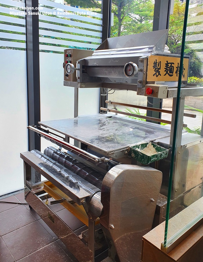 As its name implies, Miyatake specializes in Sanuki Udon, a popular type of udon noodle in the Kagawa prefecture in Japan. It is characterized by its distinctive square shape and flat edges with chewy and smooth texture. The udon is freshly made daily by using the noodle making machine that placed near the entrance.