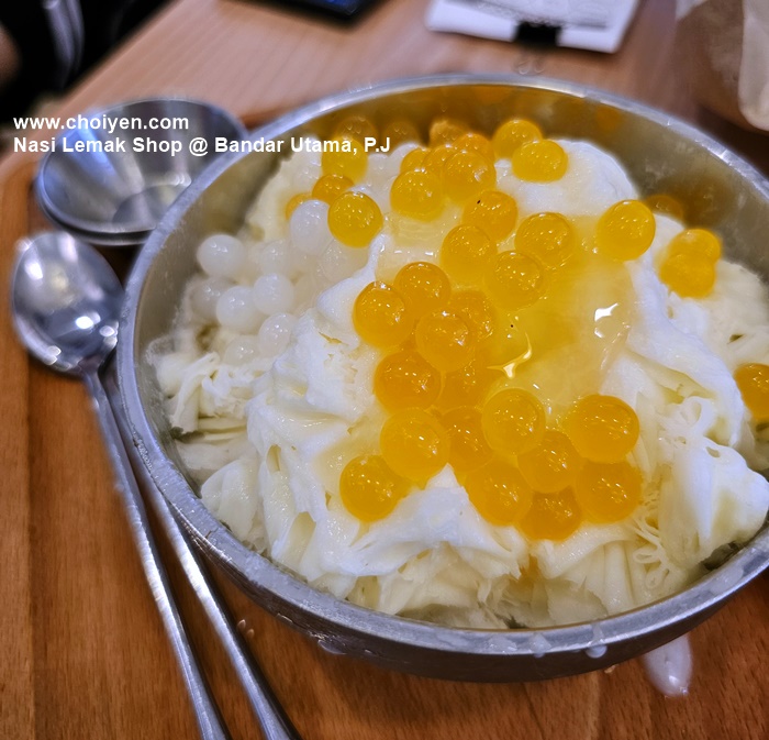 I couldn’t resist to treat myself a bowl of their Korean Bingsu. Finely shaved milky flavoured ice was topped with calamansi jelly, as well as two types of Boba – slightly chewy calamansi Boba (white) and another one with bursting calamansi syrup when bite into it. The tangy and refreshing flavour of the calamansi was a nice contrast to the spicy Nasi Lemak.