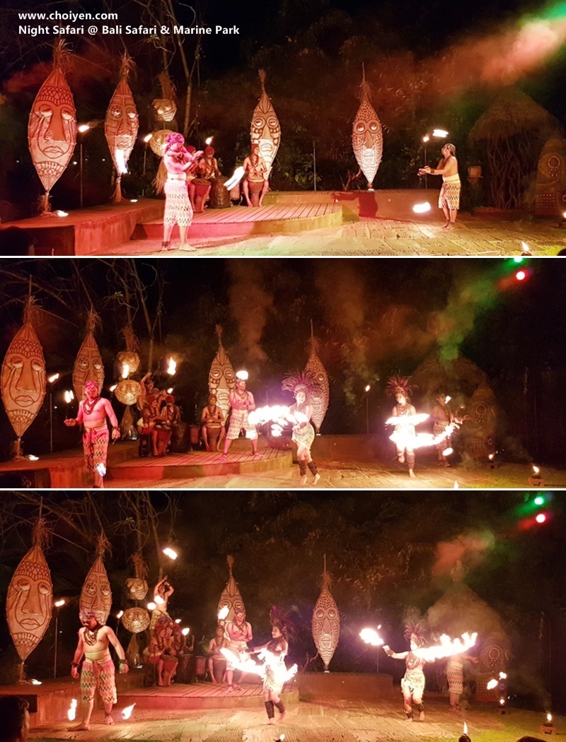 The 15 minutes performance that incorporating one of the park’s main theme, Africa, the display of fire and dance gives a peek into African culture with a Balinese twist. The dancers presented a tribal dance accompanied with drum beats and all the yelling, which I think is quite entertaining as the sparks light up the stage in a dramatic flourish. You can even stay back to take selfies with the cast!