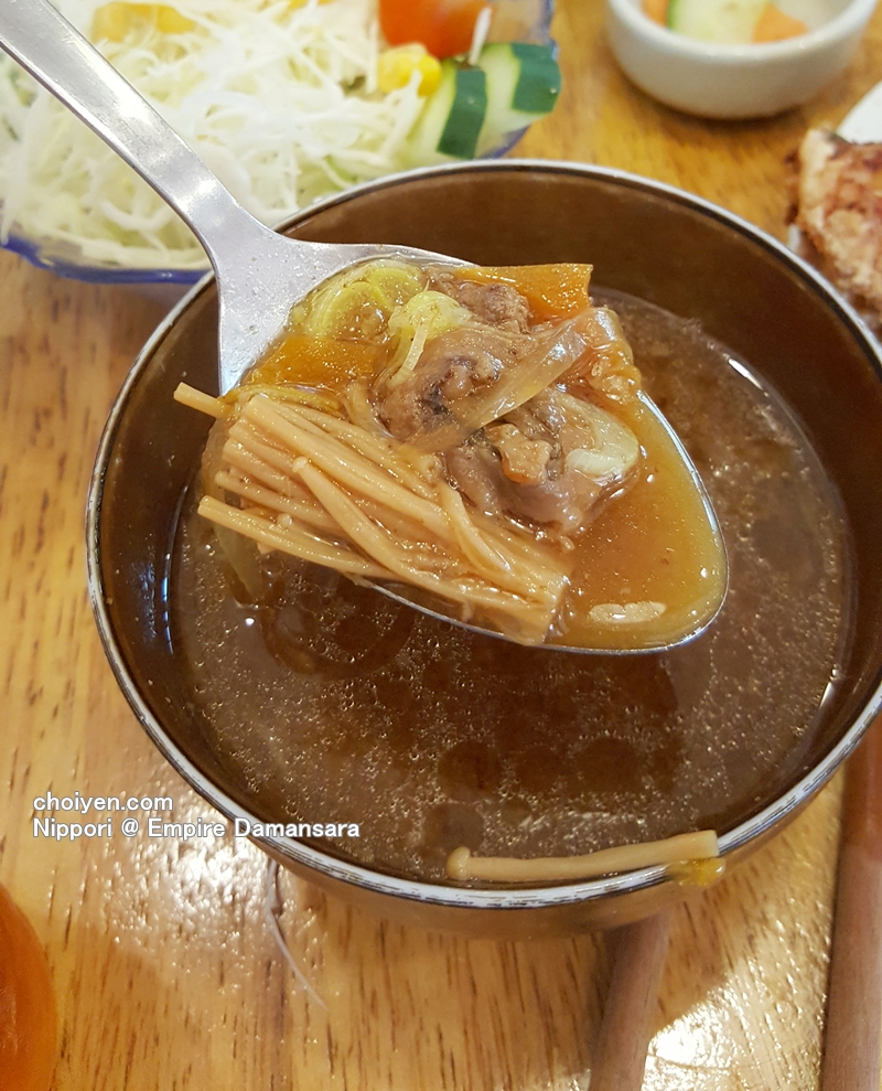 The accompanied miso soup really worth a mention for its generous amount of ingredients. I got mine with Enoki mushroom, shredded vegetables and thin meat pieces, the broth was well flavoured and delicious.