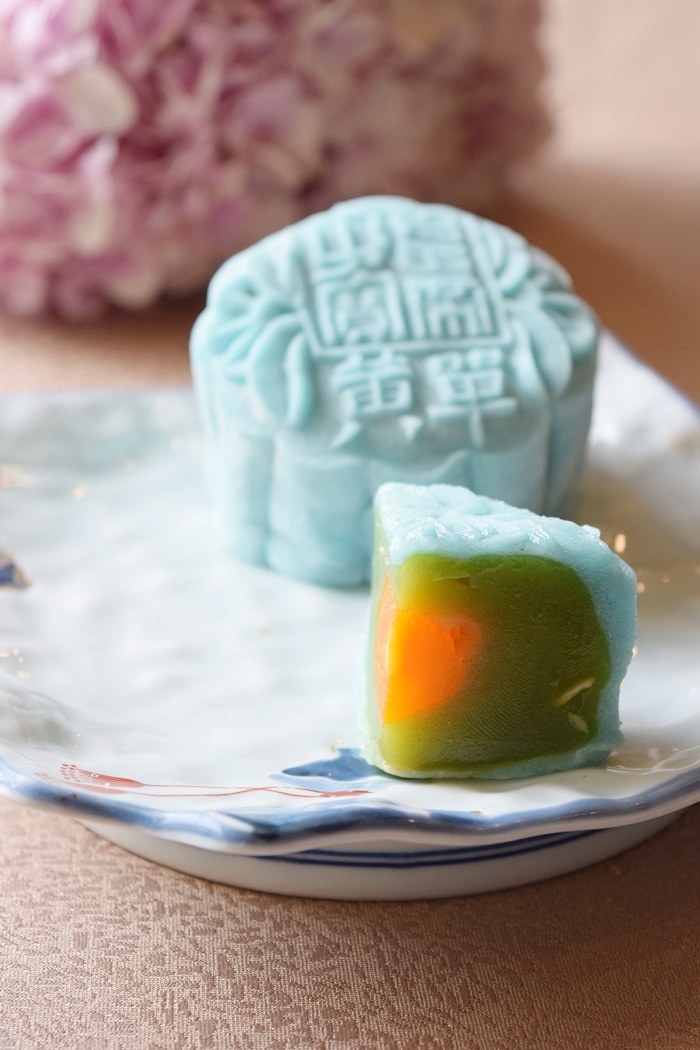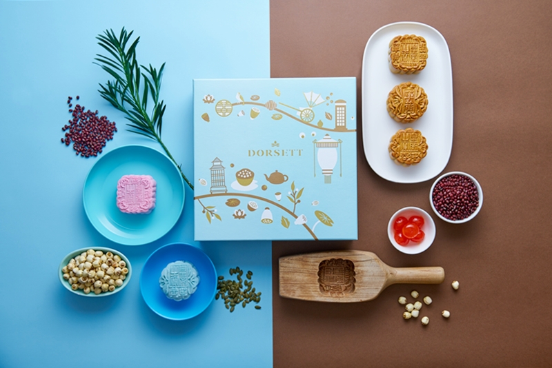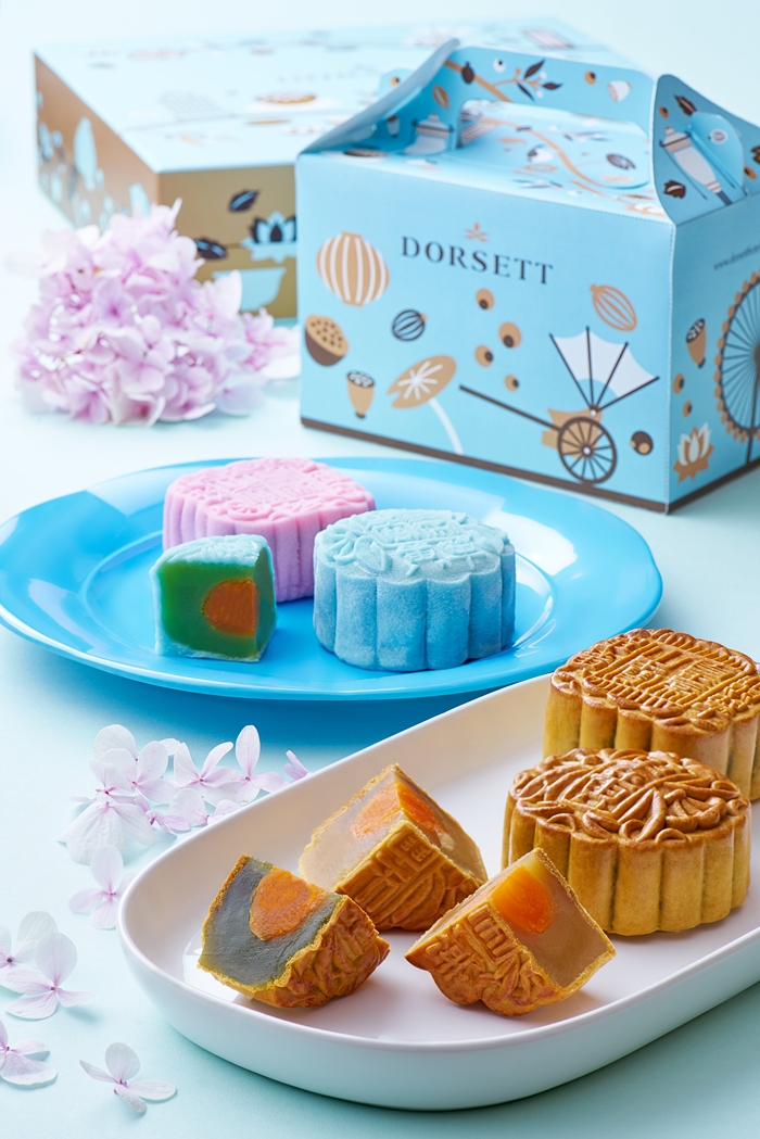 The hotel’s signature mooncake for this year is the Crystal Skin Pandan Lotus Paste with Single Yolk which embodies the Dorsett identity with its snow skin in blue.
