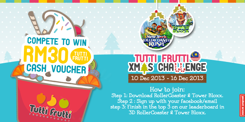 Let’s start Christmas early! Great News! Pocket Arena has partnered with Tutti Frutti Frozen Yogurt to present you with the “Tutti Frutti X’mas Challenge”, an in-game competition celebrating the Christmas spirit. First Challenge: 10 Dec – 16 Dec 2013 Second Challenge: 17 Dec – 31 Dec 2013 When the challenge ends, if you have earned yourself a place in Top 3 on our leaderboard we will […]