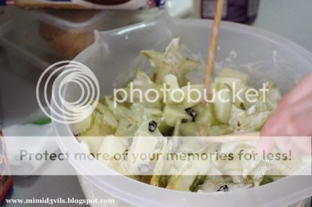 Fruit salad by MZN consisted starfruits, green apples, honeydew& raisins. Actually he brought all the fruits to CY’s house & cut by Shell & CY, he actually did nothing =.=”