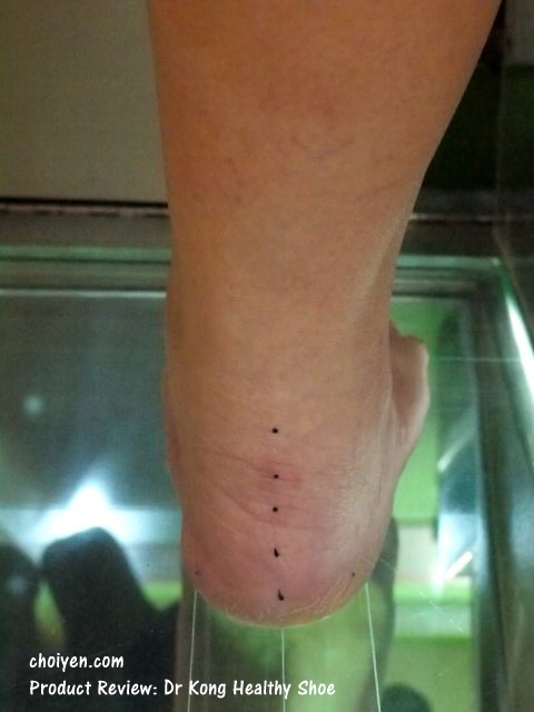 Datin Emily drew some dots on Sam’s heel to and show me how the alignment on his feet can be corrected with the help of an arch insole.