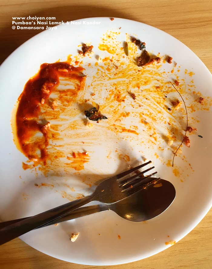 The Nasi Lemak with missing egg and cucumber (・´ω`・), hubby who made the order didn’t aware of it until I told him. I found that both condiments weren’t in sight on the food counter when I checked back the photos, I guessed they were sold out but it was only 10.00am when we were there. (;¬_¬)