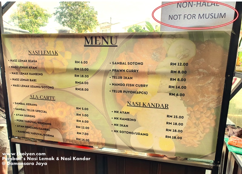 Non-halal sign is clearly visible at his stall.