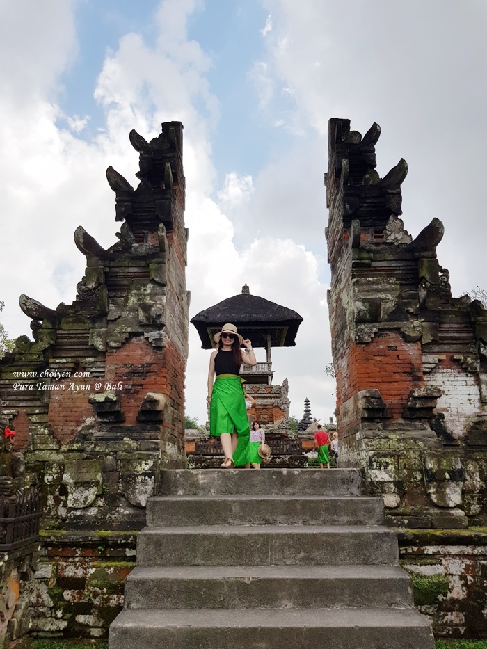 The entrance – Entering any Hindu temple in Bali requires both men and women to cover their legs below the knee by using a sarong and sarong rental fee is included in the entrance fee (IDR 40k/adult & IDR 10k/kid) at Pura Taman Ayun.