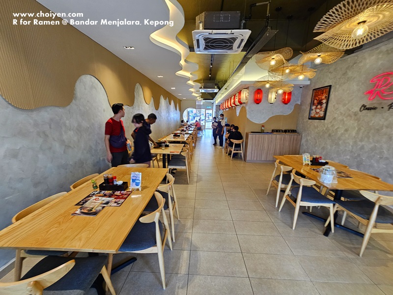 Nestled in the F&B hub of Kepong – Bandar Menjalara, R for Ramen’s dining area in long shape is bright and cozy.