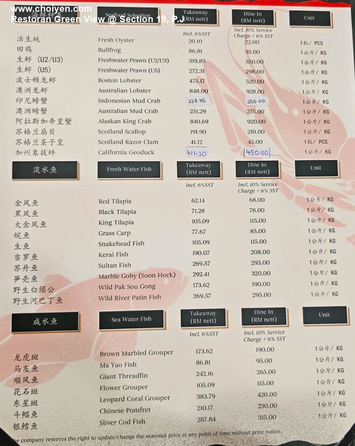 Verdict: For crab lovers, Restoran Green View definitely a good place to satisfy your craving because the crabs are fresh and meaty. Their signature Sang Har Mien, even though the price is on the high side, I would still recommend this place for once in a while indulgence when the pocket permits.