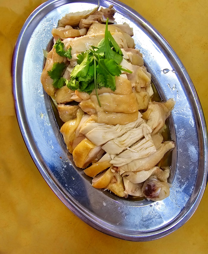 The offerings here is simple and straightforward – poached broiler chicken or farmed chicken (with innards also), served with rice or Kuey Teow soup and side dishes of fish/meat balls and blanched bean sprouts.