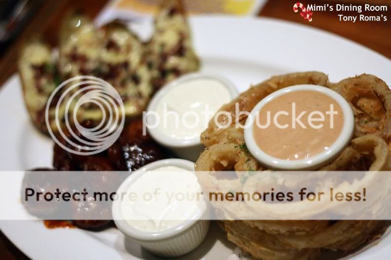 Consisted of the Boneless Buffalo Bites, Onion Loaf and Potato Skin.