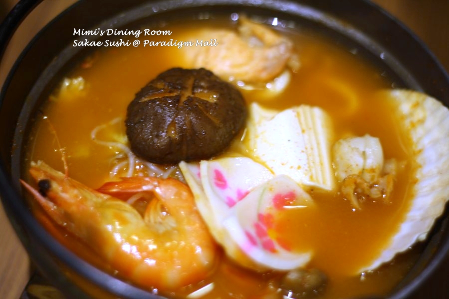 The soup was intensely flavored from the kimchi and the natural sweetness from the seafood like squid, mussel, cuttlefish and salmon well encapsulated in the broth too. Other than the seafood, this hotpot also brimming with assorted mushrooms, tofu and fish cake.