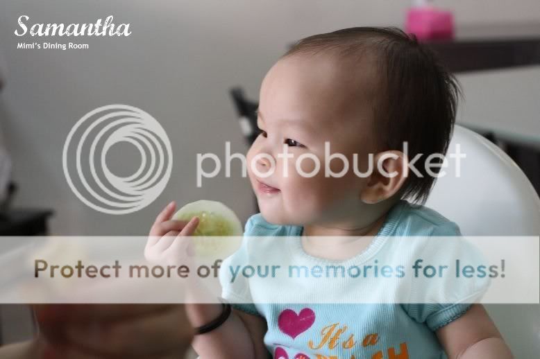 Look at her satisfying face with her latest favorite snack – cucumber slice =.=”