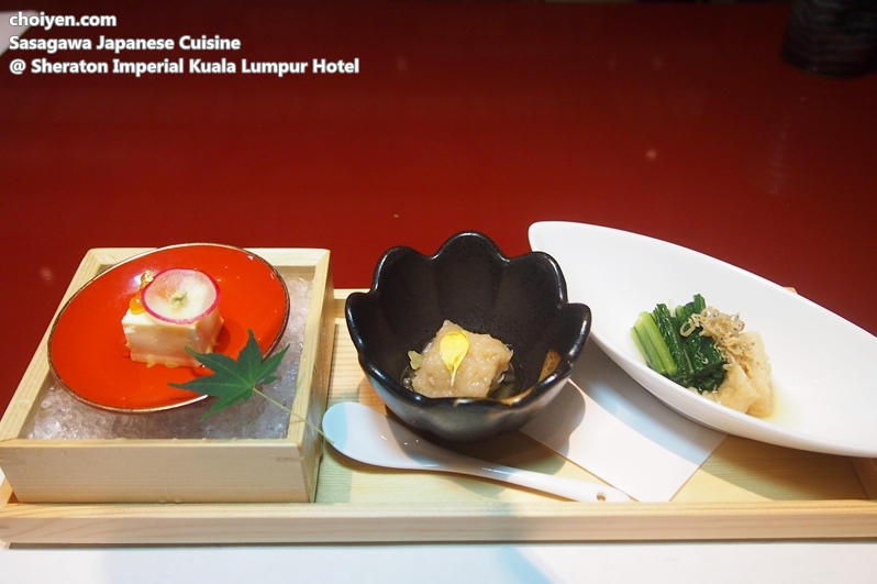 Our first course was neatly presented in a wooden tray that consisted 3 small dishes.