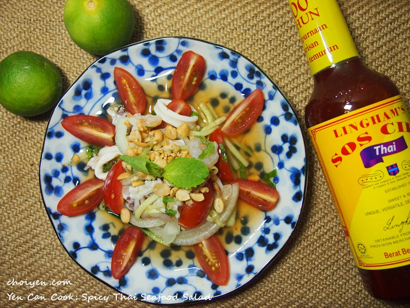 Today I’m going to share you guys a simple recipe by using Lingham’s Thai Chili Sauce ~ an appetizing Thai style seafood salad.