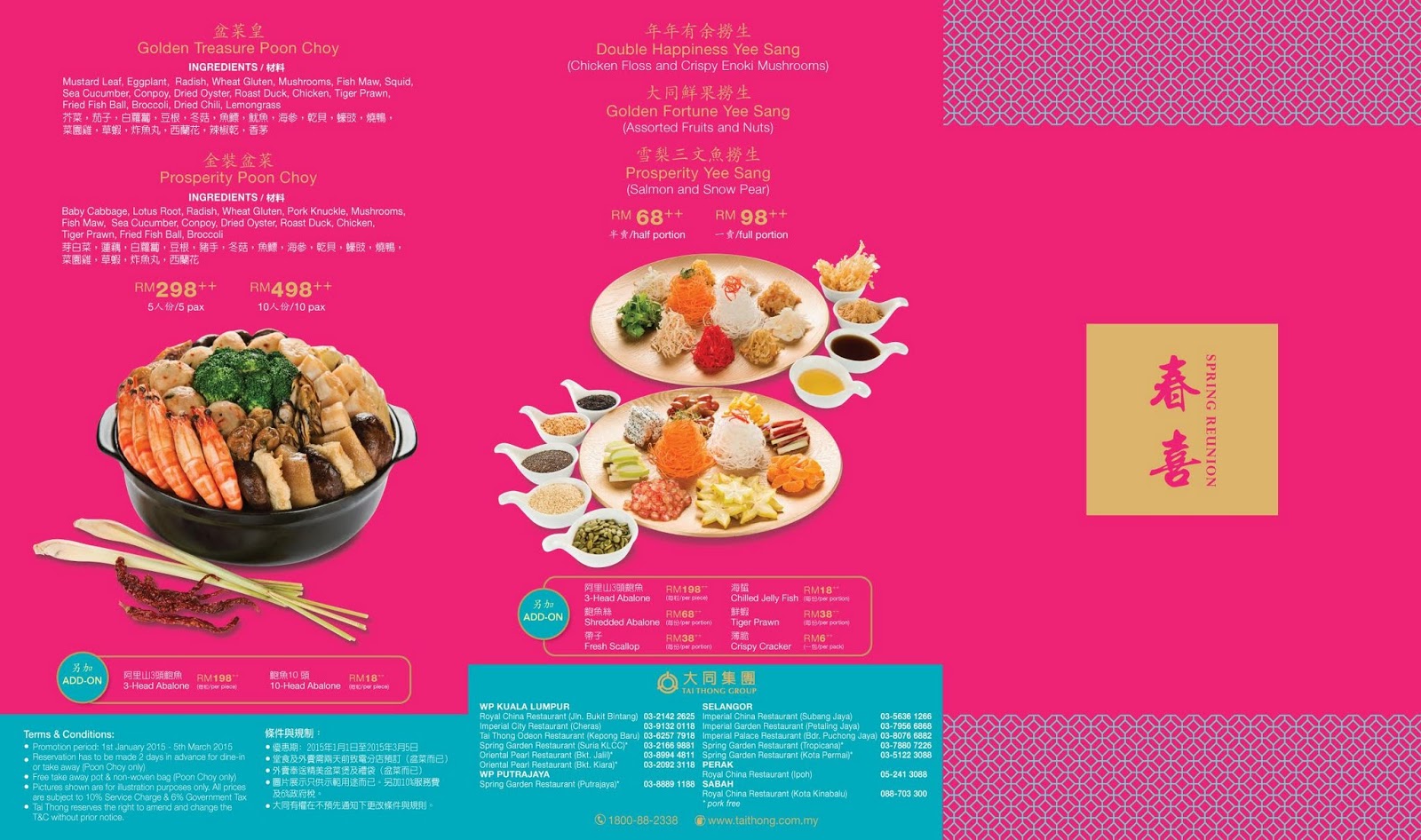 Check out the prices of Tai Thong’s Poon Choy and Chinese New Year set menus as below, click to enlarge.