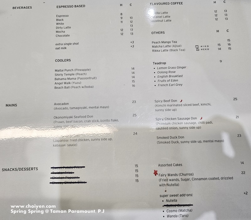Occupied the first floor of a shophouse in Taman Paramount, Spring Spring is a feline-friendly cafe with eight adorable resident cats. The space with a sun-drenched and plant-adorned setting is rather inviting and pleasing. One would definitely struck by the array of Caudex and succulent plants, as well as various of ornaments on display once stepped into the cafe.