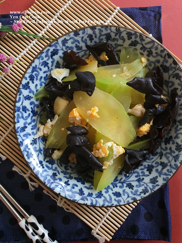 Yen Can Cook ~ Stir Fried Celtuce with Wood Ear Fungus (Vegetarian)