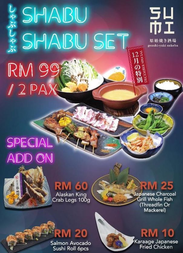 The popular November promotion of Shabu Shabu Set is brought back due to the high demand. Priced at RM99 / 2 pax, available from 15 December 2018 to 15 Jan 2019, the latest promotion come with a few special adds on.