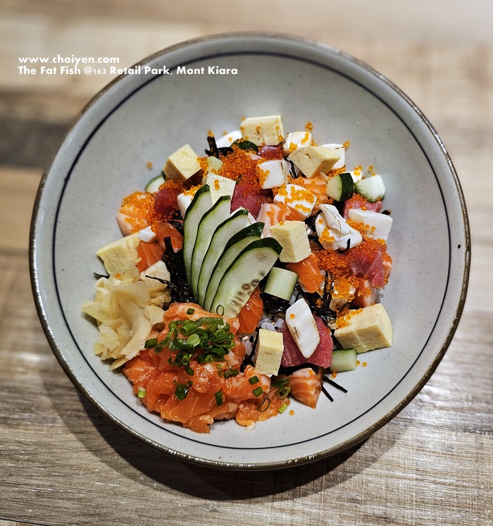 It’s a colourful rice bowl topped with diced Salmon, Maguro, Shiro Maguro, chopped Salmon, Tobikko, Tamago, cucumber, pickled ginger and shredded seaweed. We enjoyed immensely the top notch freshness of the fish as well as the varied textures from different ingredients in the dish.