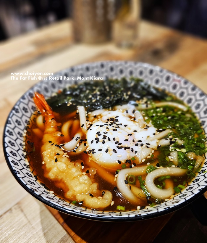 Springy Udon served in flavourful soy sauce based broth, accompanied with Tempura prawn, wobbly Onsen egg, Wakame and chopped scallion. However I would have hope the Tempura prawn can be served separately to avoid it becomes soggy. (´・_・`)