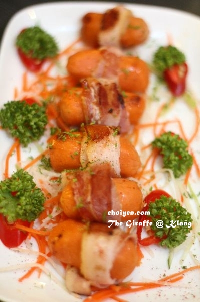 What a cute name~ Cocktail sausages wrapped with savory bacon.
