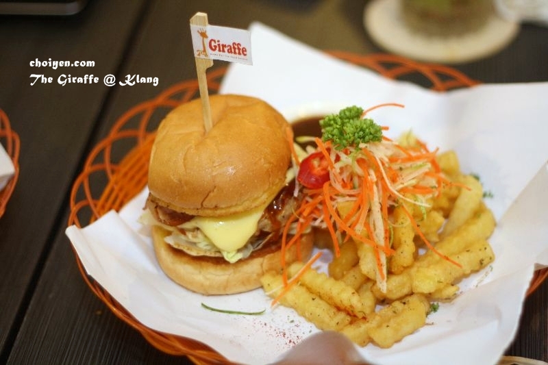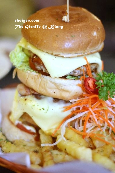 omg, the giraffe is so cute!! and the burger looks nice with melting cheese. yums