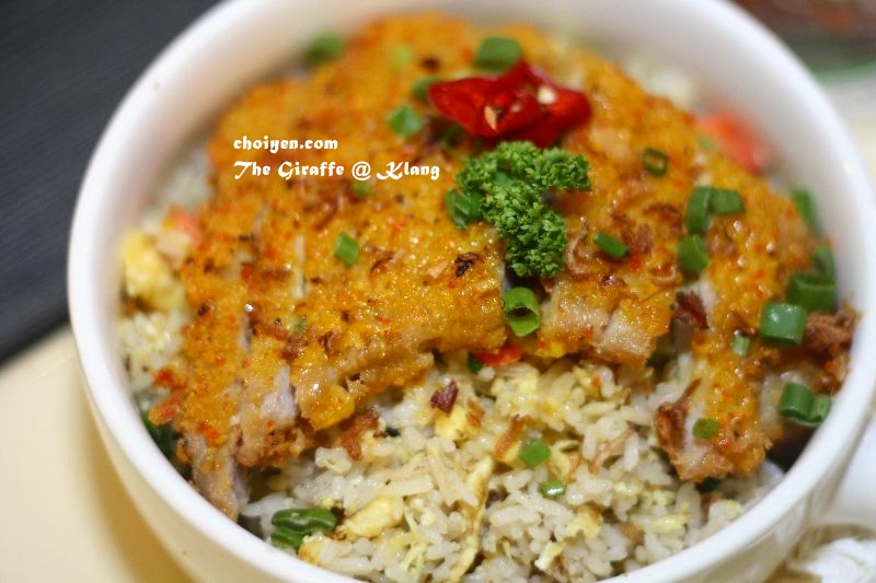 Fried rice topped with fried breaded pork chop, I love the fried rice which is fluffy with plenty of egg.