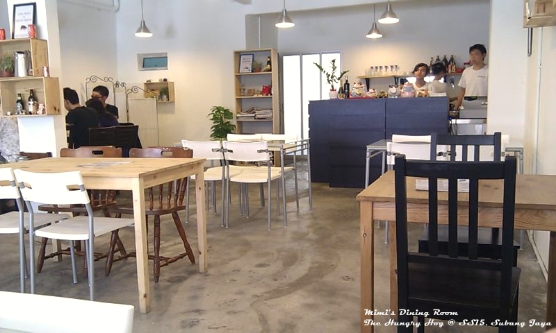Simple & unpretentious bright white theme & straight forward wooden tables.