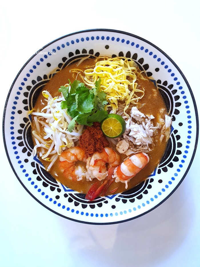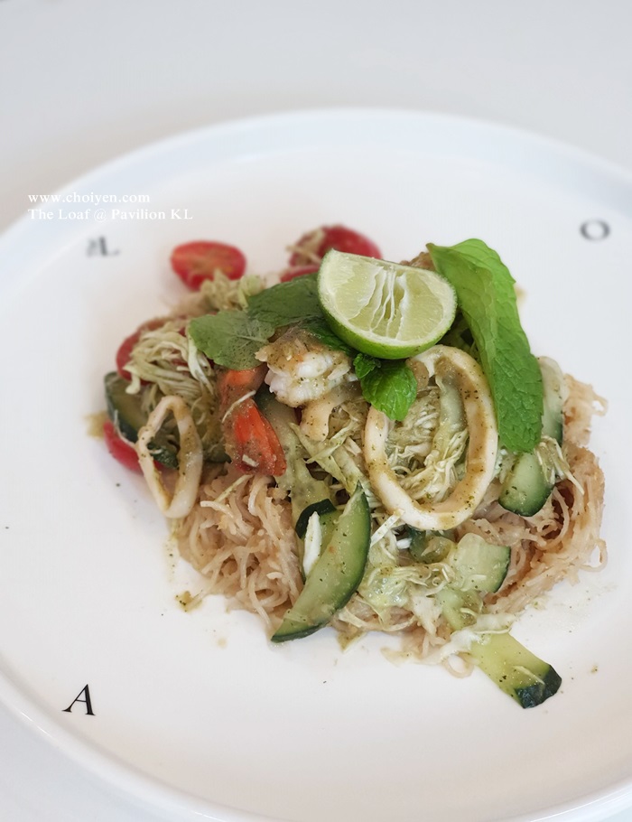 Meehoon tossed in lemongrass based sauce served with Kerabu salad, prawn and squid.