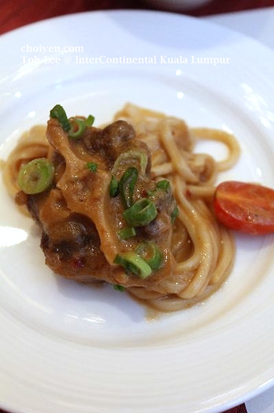 Chunky oxtail laying on bed of Chinese ramen and sufficiently dressed in creamy spicy bean paste sauce. The oxtail was not braised till melting tender but retained a good bite texture while the slippery smooth ramen evenly coated with luscious gravy was toothsome but make sure you savor it hot as it can be quite cloying when cold.