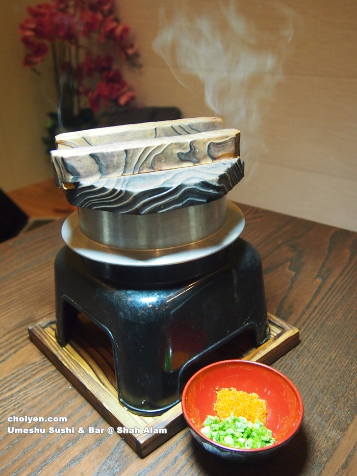 Kamameshi (釜飯) is one of the special item at Umeshu. Literally translates to “kettle rice” , is a traditional Japanese rice dish cooked in an iron pot.