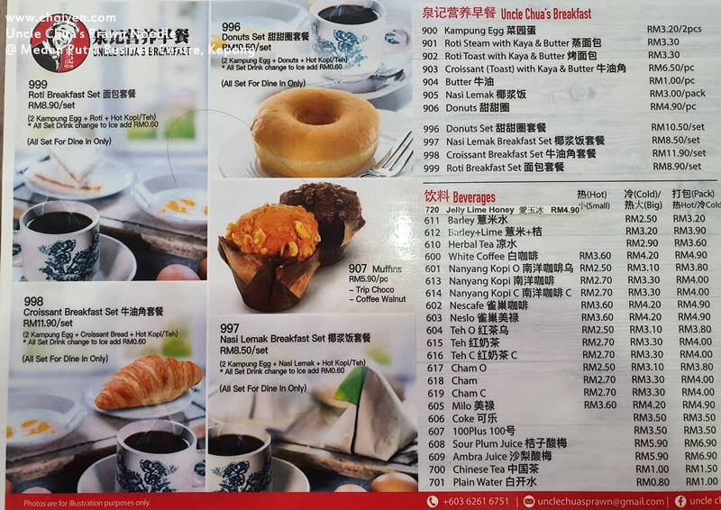 The menu – Apart from the signature Prawn Noodle (with different add-on ingredients), it offered other local delicacies such as Lam Mee, Pork Paste Noodle (dry/soup), Nasi Lemak, toasts and even donut, muffin, croissant and red bean sweet soup.