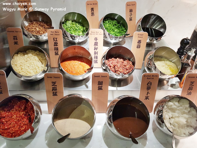 There are eight soup base options at Wagyu More such as Pork Bone, Spicy Pork Bone, Collagen Chicken, Sukiyaki, Kimchi, Kombu, Miso, and Tomato. Diners can also upgrade their soup base to Mala Soup and Herbal Soup with additional charge of RM4.80++ per soup. Customers can choose up to two soup bases as both single and communal pots are available.