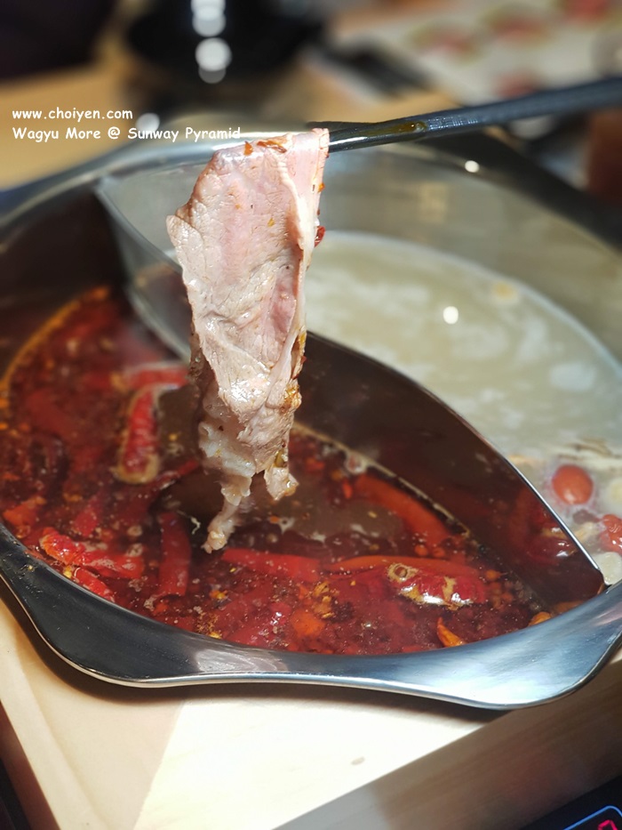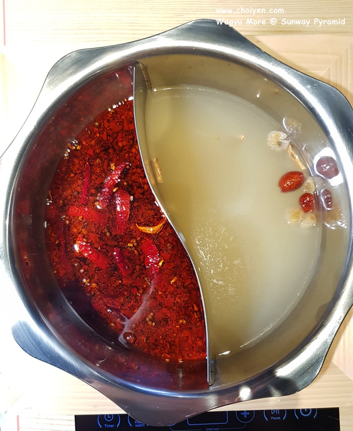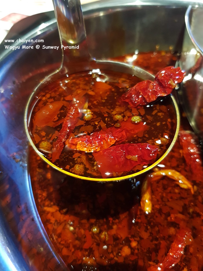 Oh gosh! Look at the amount of chilies in the broth hee..hee… I prefer to enjoy wagyu in steak form rather than in hotpot.