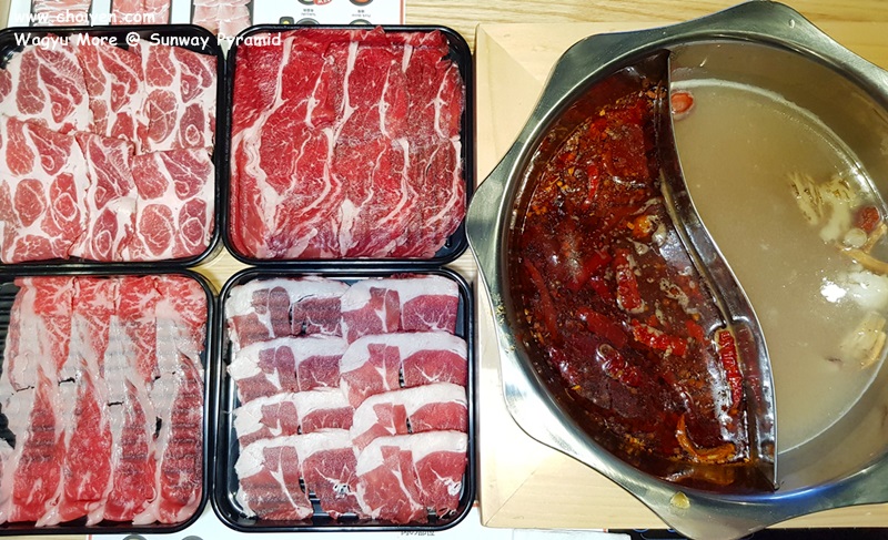 Wagyu More offers All-You-Can-Eat Japanese Shabu-Shabu with a plethora of unlimited supply of premium meat selection (US pork loin, imported pork collar, imported pork belly, marinated chicken thigh, Australian beef chuck roll, Australian beef brisket, imported lamb and etc) as well as a variety of vegetables, meatballs, hot food, drinks and desserts.