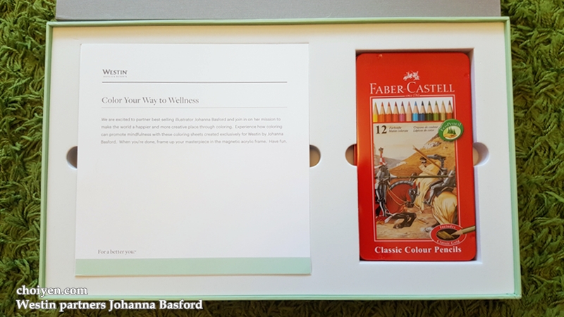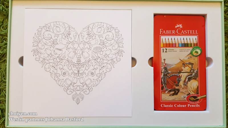 Thank you The Westin Kuala Lumpur for the gift set which containing a piece of Johanna Basford’s colouring sheet, an acrylic frame, and a set of colour pencils.