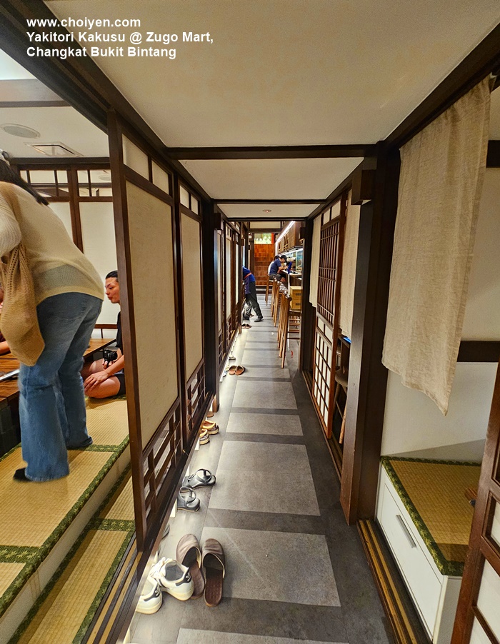 Walk down the staircase and it will lead you to a different world. The aforementioned restaurant – Yakitori Kakusu is nestled in a sort basement level with tatami seating and bar counter seating facing the semi-open kitchen at the front of the restaurant.