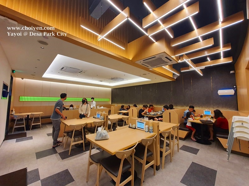Located near the park at The Waterfront Desa Park City, Yayoi has a bright and comfortable indoor dining area, dressed in light wood tone.