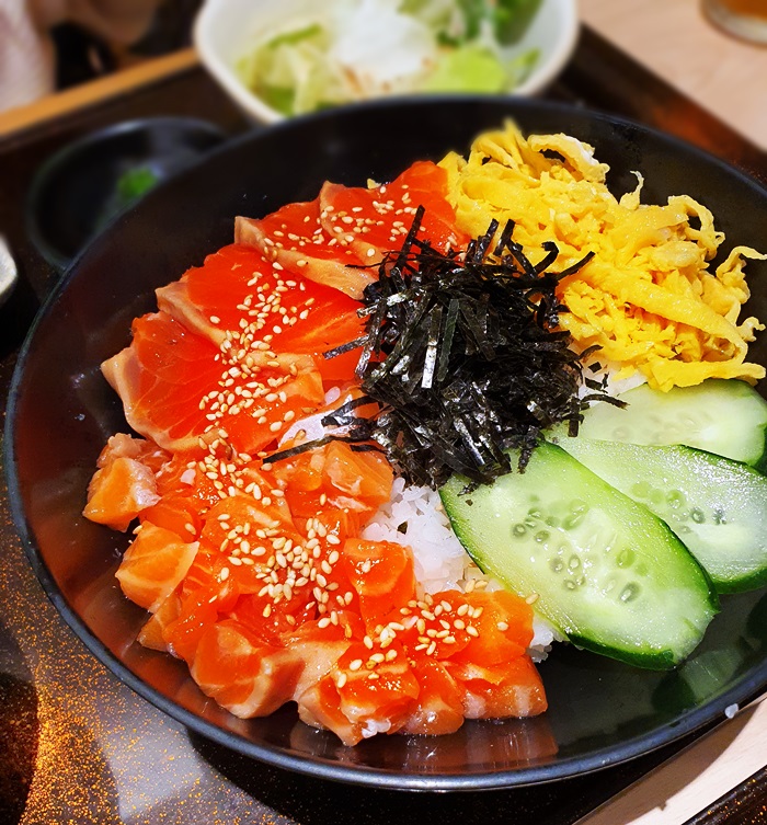 Chirashi means “scattered” in Japanese and Chirashi Don is usually serve at happy or celebratory event such as Hinamatsuri (Girls’ Day) and Kodomo no hi (Children’s Day) due to its festive and visually appealing presentation. Sushi rice topped with variety of raw fish and vegetable garnishes which provided a multitude of flavours and texture, it’s definitely a treat!