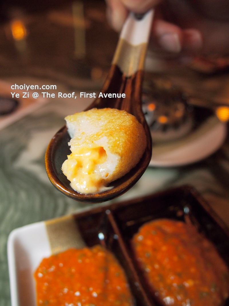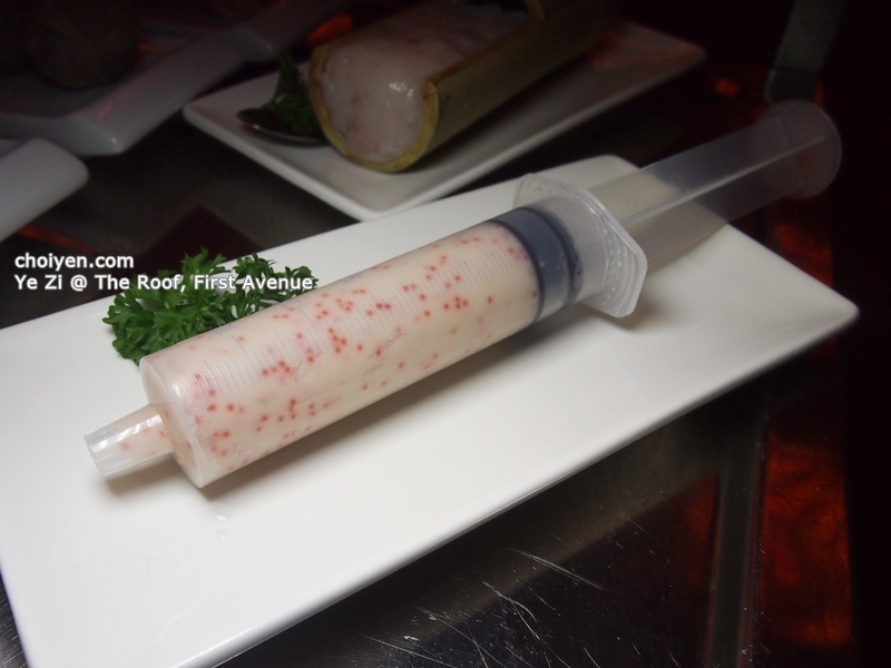 Served playfully in a syringe, you may need help from the waiting staff to press out the paste as the texture of the paste is quite firm. The popping sensation of the flying fish roes was interesting.