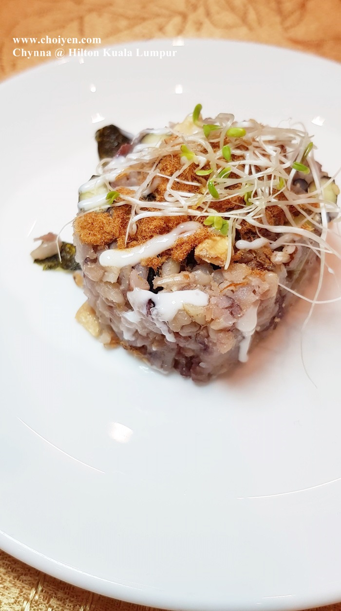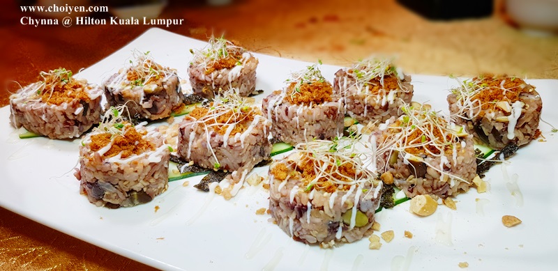 I really like this! Instead of the customary waxed meat rice, we were presented with this maki rolls looked alike staple which showcased healthy ten grains rice rolls stuffed with chicken floss and seaweed. I like how the assorted grains and nuts give the dish a pleasant textural bite.