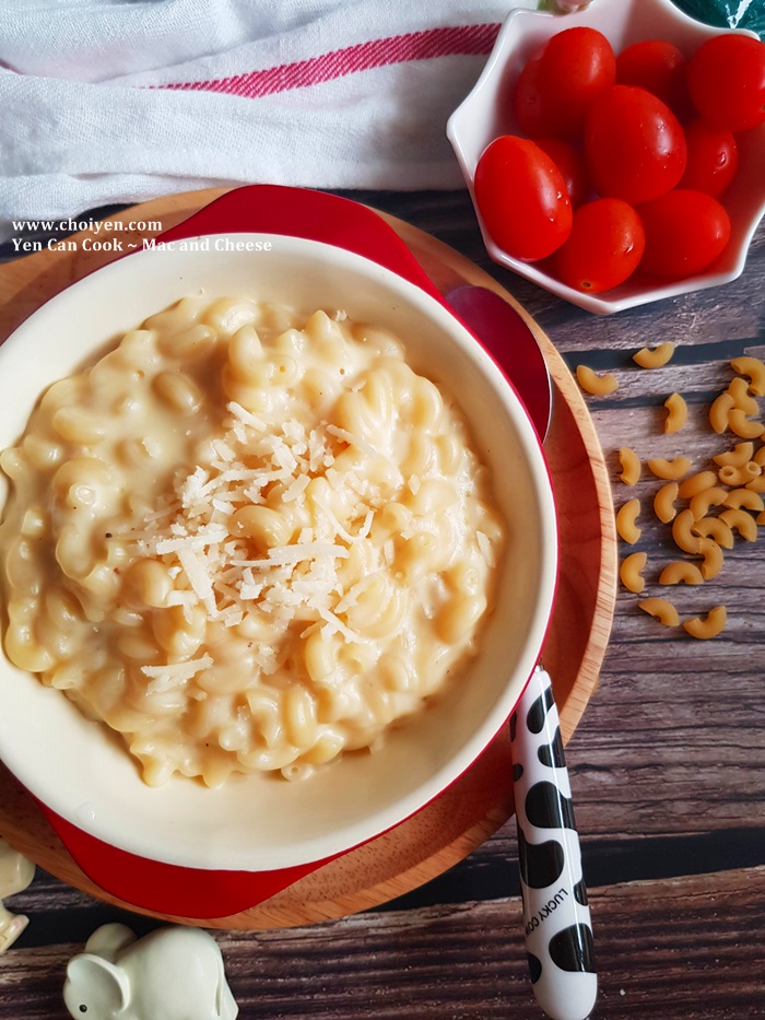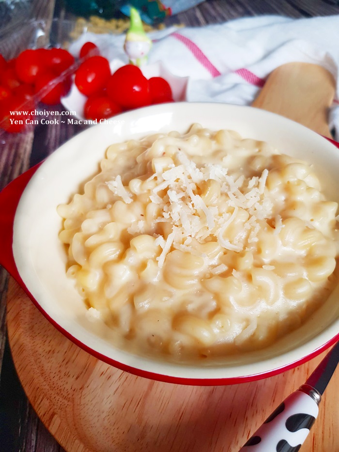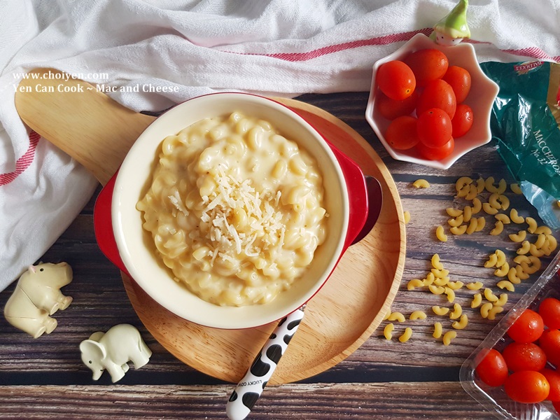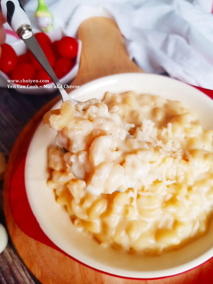 Sam is a big fan of Mac and Cheese. I always wanted to prepare it at home for her but most of the recipes call for flour as one of the ingredients which I’m not really fond of until I saw this version that I’m going to share today. Only 3 simple ingredients are required, without using any flour, but still perfectly rich and creamy and it’s sure to be loved by people of all ages! This dish is easy enough for weekday dinners and it’s really sound like a perfect Mac and Cheese recipe for me, simple and easy, my philosophy!