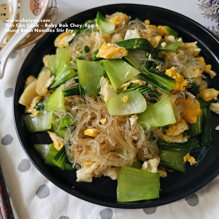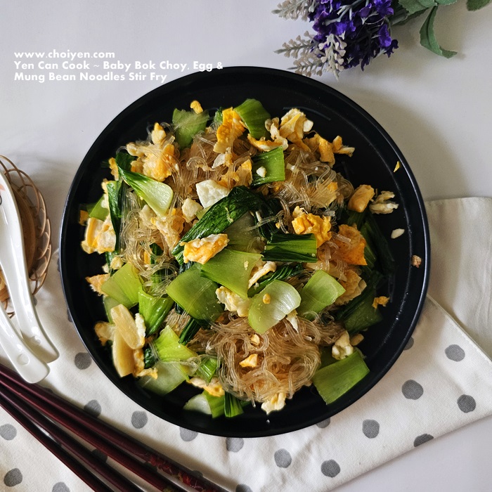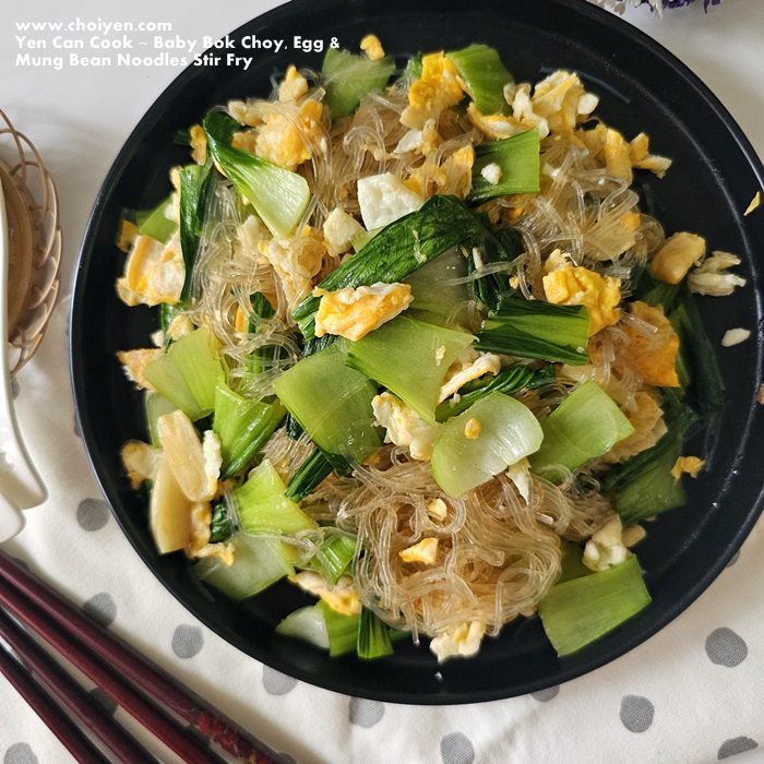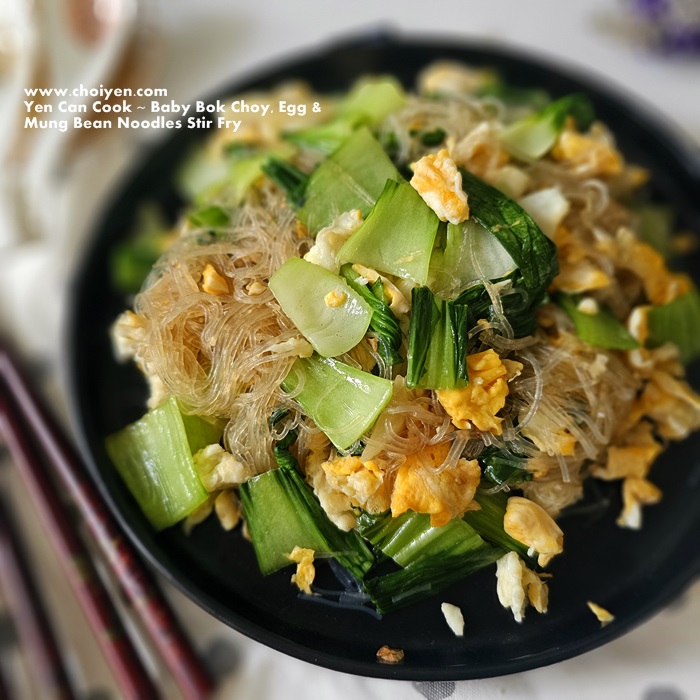 Yen Can Cook ~ Baby Bok Choy, Egg & Mung Bean Noodles/Glass Noodles Stir Fry