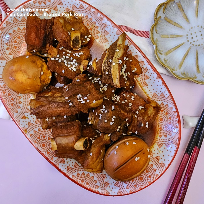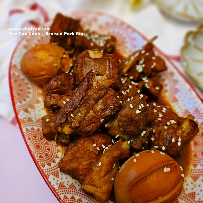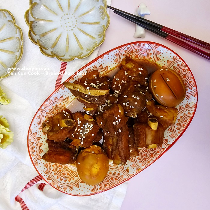 Is it because of the caramelised rock sugar that gave your pork ribs that nice brown colour? I don’t cook with sugar at home so this is out. ^_~ P/S: Wah, you took the time to carve the hard-boiled eggs for presentation….good job! 😀