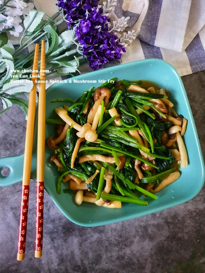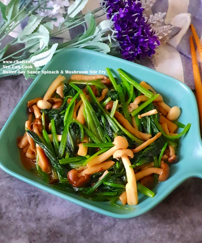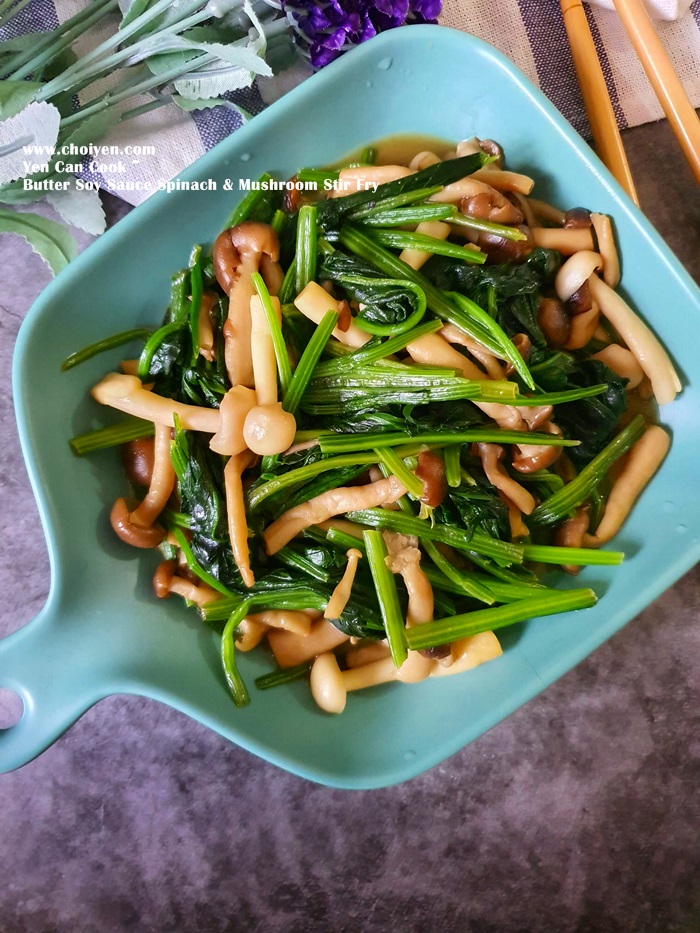 Yen Can Cook ~ Butter Soy Sauce Spinach & Mushroom Stir Fry