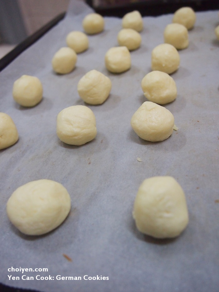 Step 3: Roll into small balls (about 2cm in diameter), arrange on lined baking pan.